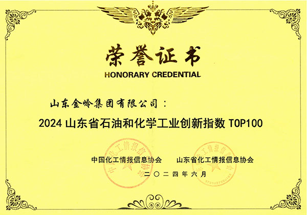 2024年6月21日,在中國化工情報信息協(xié)會、山東省化工情報信息協(xié)會組織召開的2024年度化工產(chǎn)學(xué)研論壇暨化工行業(yè)新質(zhì)生產(chǎn)力發(fā)展推進(jìn)大會上,山東金嶺集團(tuán)有限公司被授予“2024山東省石油和化學(xué)工業(yè)創(chuàng)新指數(shù)TOP100”,以表彰公司在深入實施創(chuàng)新驅(qū)動和綠色可持續(xù)發(fā)展戰(zhàn)略、實現(xiàn)石油和化工產(chǎn)業(yè)的高質(zhì)量和綠色低碳循環(huán)發(fā)展中做出的突出貢獻(xiàn)。