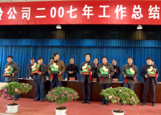 2008年2月1日,公司2007年工作總結(jié)暨表彰獎(jiǎng)勵(lì)大會(huì)在五樓會(huì)議室隆重召開,全體員工參加了會(huì)議。會(huì)議對(duì)在技術(shù)改造、管理創(chuàng)新、產(chǎn)品銷售、項(xiàng)目引進(jìn)等工作中做出突出貢獻(xiàn)、取得優(yōu)異成績(jī)的員工進(jìn)行了表彰獎(jiǎng)勵(lì)。董事長(zhǎng)趙曰嶺作了2007年工作總結(jié)報(bào)告。